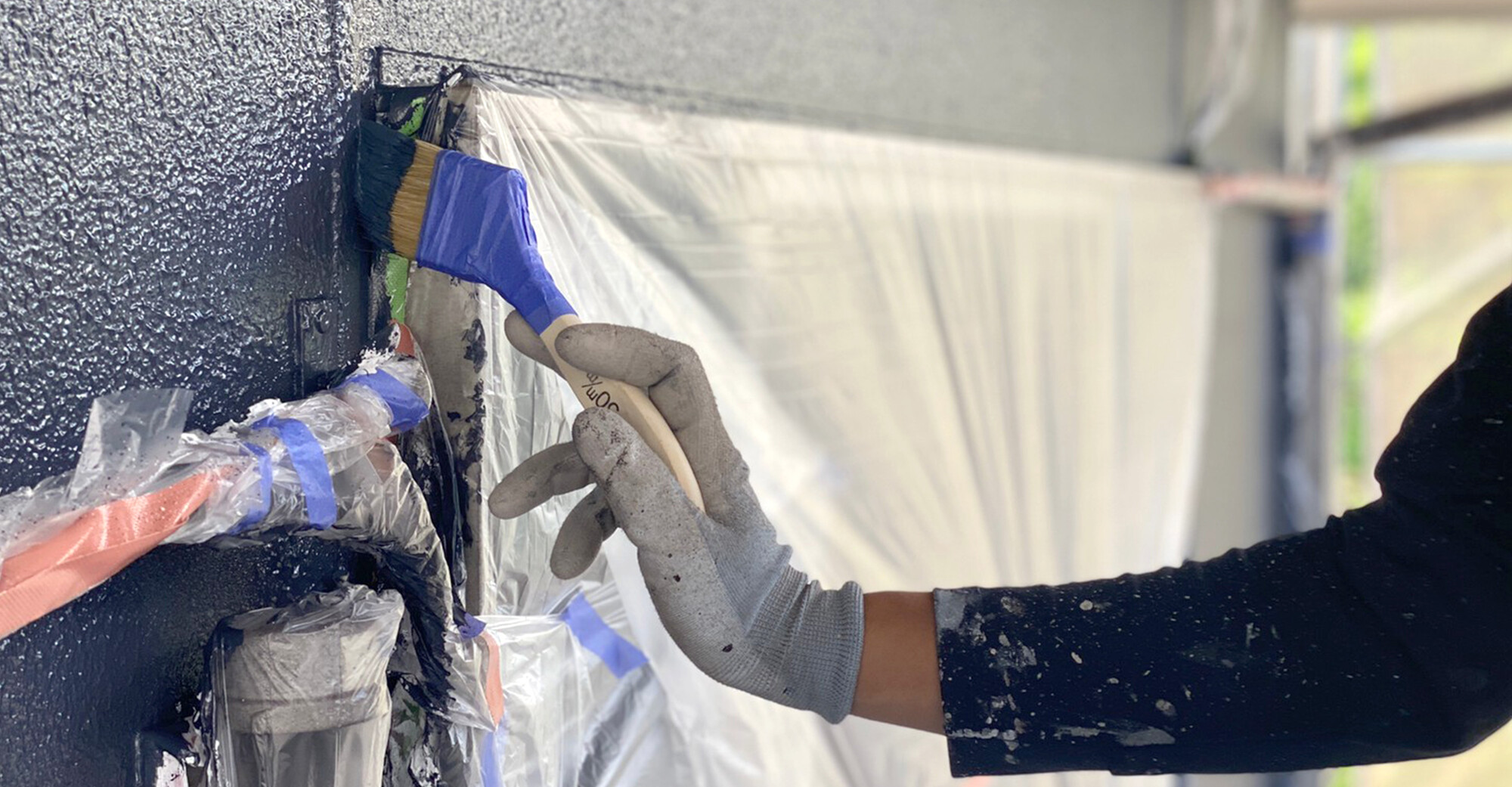 長年風雨にさらされ傷んだ外壁を整え、より長持ちさせるために、下塗りを2回塗ります。通常よリ丁寧な下塗リ2回+中塗り+上塗りの4回塗りをすることで耐久性を上げます。